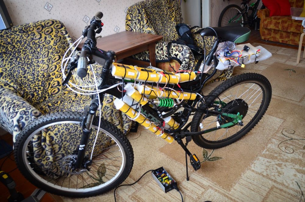 Теперь остаётся только подключить кабель готового аккумулятора к электродвигателю ну и, конечно же, заняться размещением источника питания на конструкции велосипеда.