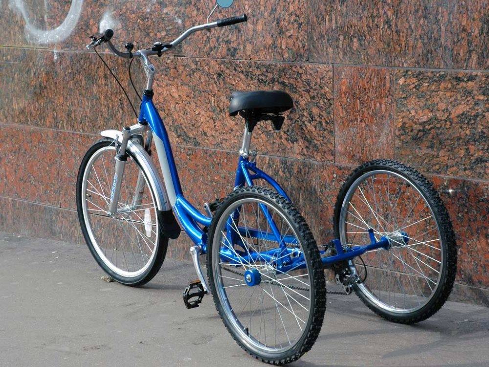 Единственное, что следует учесть — привод трехколесного велосипеда для взрослых без дифференциала, как правило, имеется только на правом колесе. Поэтому при повороте направо наблюдается небольшой крен в левую сторону. Обычно, в трехколесных велосипедах используются стандартные компоненты, кроме рамы, поэтому проблем с ремонтом и запчастями не возникает.