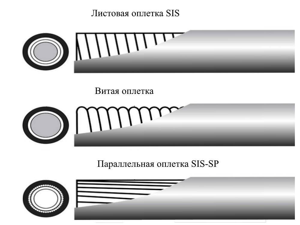 Оплётки на рынке представлены в трёх видах: витого типа, тип SIS и усовершенствованный тип SIS-SP.