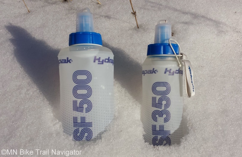 Лично я предпочитаю для этой цели бутылки Nalgene на 48 унции. Две такие бутылки спокойно заменяют трёхлитровый бурдюк. Кроме того, хорошо себя показали литровые бутылки Smartwater, которые ещё и в рюкзак помещаются без каких-либо сложностей.