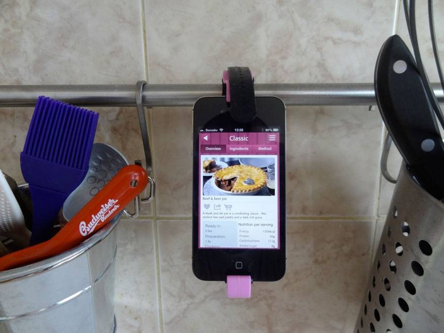На кухне будет хозяйке в помощь после того, как в нём будет закреплён смартфон на штанге столовых приборов. Теперь можно слушать музыку или радио, а также читать рецепты вкусных блюд на уровне глаз во время их приготовления.