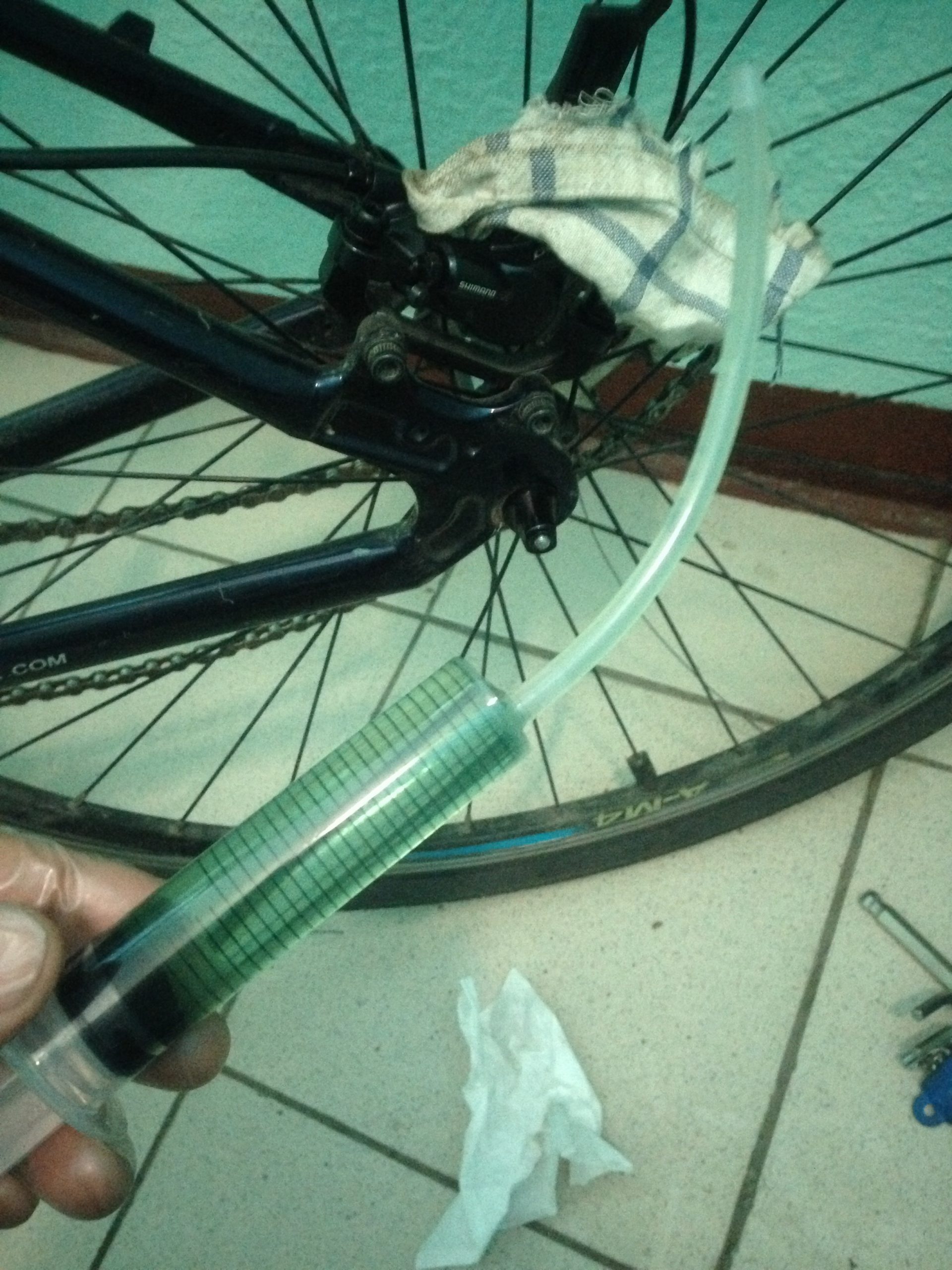 - Масло или тормозная жидкость, в зависимости от модели системы. Для Shimano применяют специальное минеральное масло.