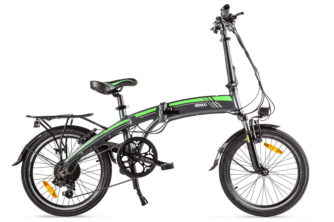 - Eltreco Leto. Складная модель, снабжена мотором мощностью 350 Вт. Скорость достигает 30 км/ч. Вес велосипеда — 21,5 кг.