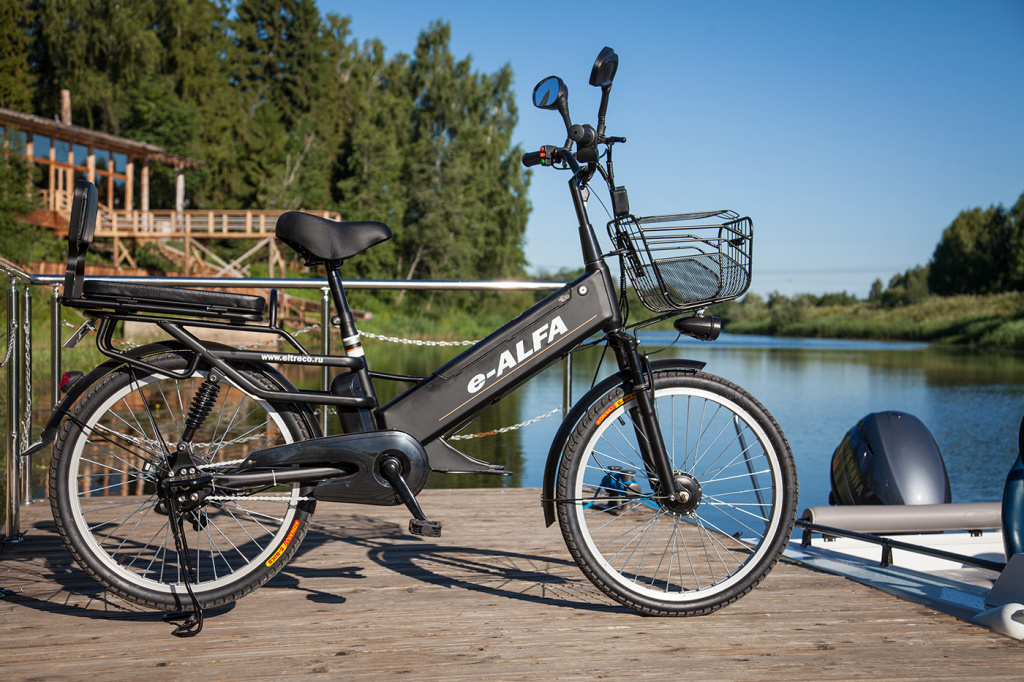 - Green City e-Alfa GL. Подойдет для спокойной езды по асфальтированной дороге. В комплект входят корзина, багажник, детское сиденье. Мощность — 500 Вт, скорость — 35 км/ч.