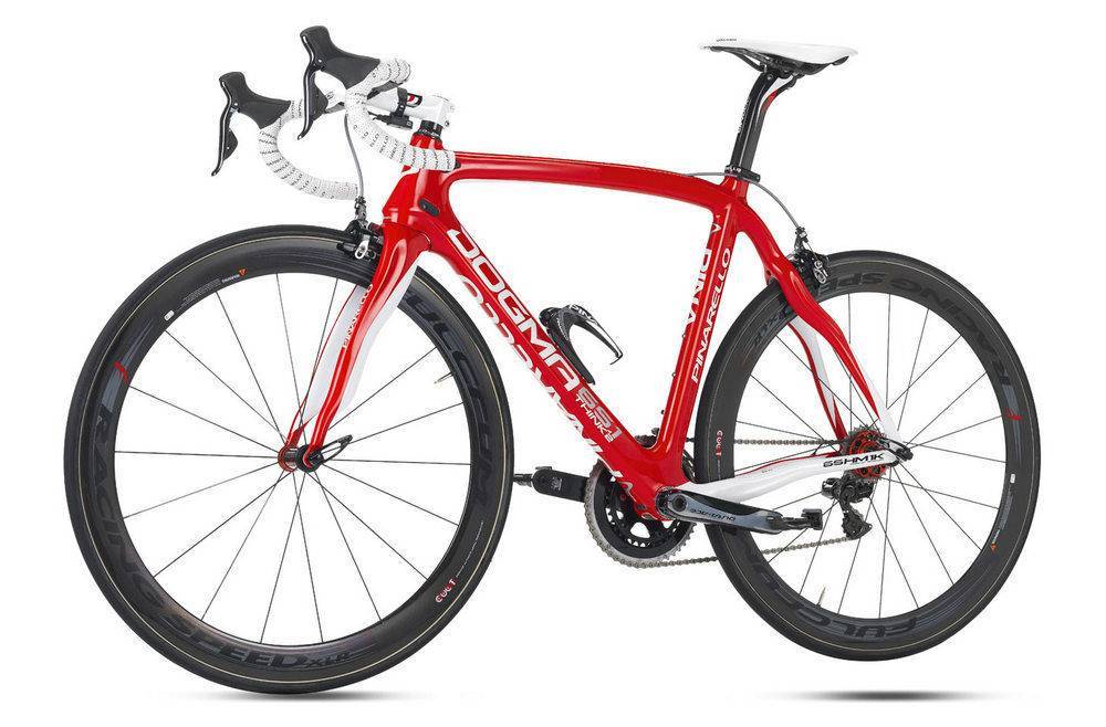 Модель от уже известной вам итальянской компании принесла победу на семи этапах Тур де Франс 2013 года и обеспечила сразу два места на пьедестале победителей. Вес карбоновой рамы этого велосипеда — 920 грамм, общий вес без педалей и держателя для фляги составляет 6,85 кг. Жёсткие алюминиевые колёса оснащены шинами фирмы Continental. Конечно, существуют модели более лёгкие, с лучшими аэродинамическими характеристиками, но, как признаются сами велогонщики, по совокупности параметров DOGMA 65.1 Think2 не имеет равных.