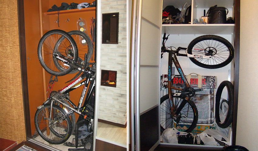 - Если в квартире есть чулан и кладовая, то можно личный транспорт убрать туда, чтобы полностью его спрятать.