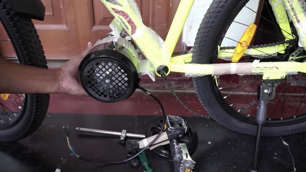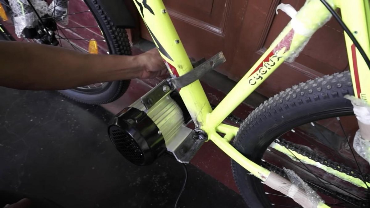 Такой мотор представляет собой самостоятельную деталь, которая соединяется с нижней частью рамы велосипеда. При монтаже такого вида двигателя обязательно следует установить кожух, который будет защищать мотор.