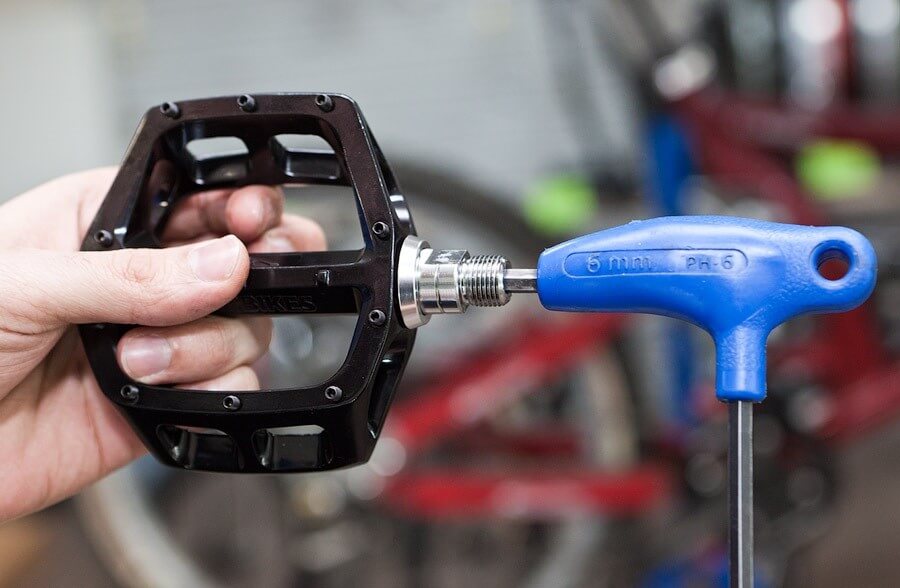 Во время обслуживания педалей, сперва нужно удалить остатки старой смазки и грязь, при помощи тряпки или бумажной салфетки. Очистить надо чашки внутри корпуса, ось и шарики. Если же это промышленный подшипник, то с него необходимо снять сначала пыльник и затем уже удалять старую смазку. После того, как старая смазка будет удалена, можно наносить новую. Для этого можно использовать литол или специальную смазку, которую продают в каждом веломагазине.