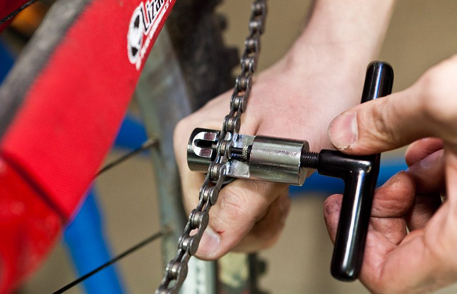 После того, как определена необходимая длина цепи, удалите ненужные звенья. Перекиньте цепь обратно на самые маленькие звездочки.