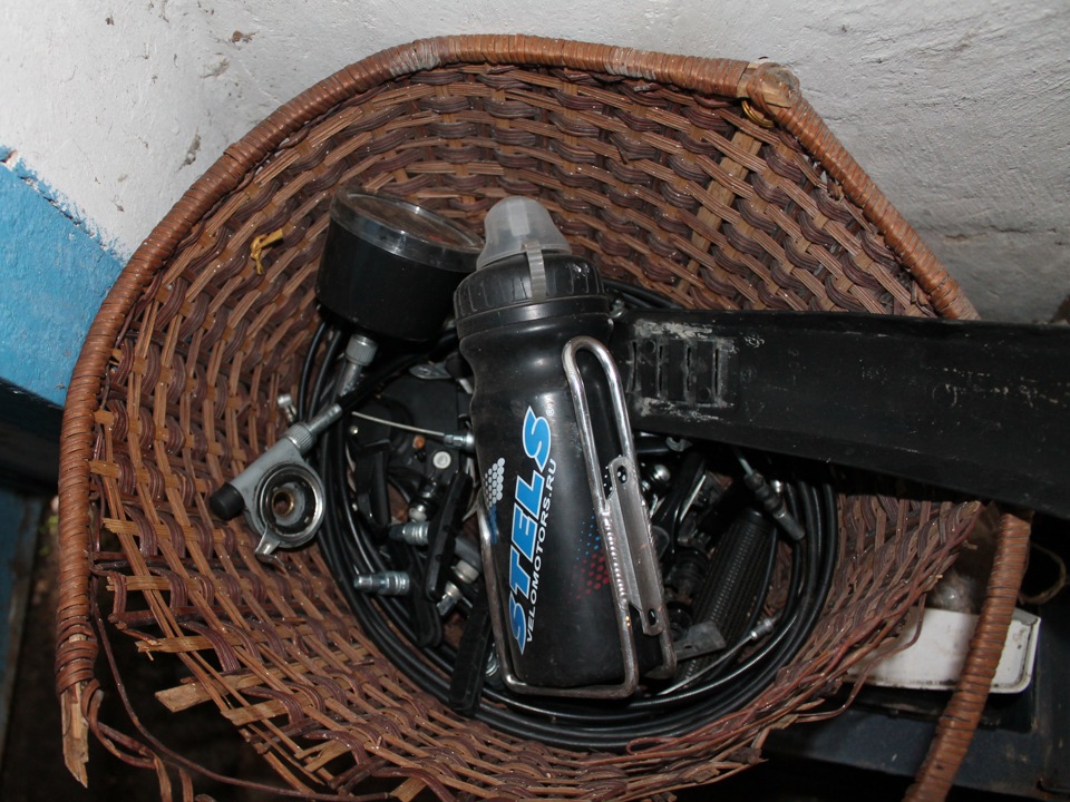 Время летело, уже наступил вечер, папа уехал в город и Я остался один. Но перед тем как он уехал Я заметил что переднее колесо сдувает. Я накачал его, но через пол часа оно опять спустилось. Вынув камеру пошли в ванне с водой во дворе. Нашли малюсенькую дырочку и тут же заклеили её. Собрав колесо оно снова спустилось, даже не надувшись.