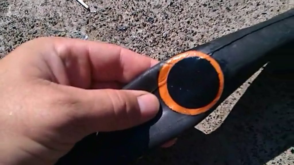 1) Возьмите новую камеру или заклеенную (как заклеить камеру), сожмите ее одной рукой и проведите по кругу — это поможет отчистить ее от нежелательных посторонних предметов (кусочки резины, металлическая стружка и т.д.)