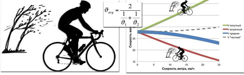 На скоростях 25-27 км/ч существенно тормозит движение велосипеда сопротивление воздуха. Если дует встречный ветер, то становится трудно двигаться уже на скорости 10-15 км/ч. На горном велосипеде с широким и высоко установленным рулём, а особенно, с низко опущенным седлом, намного тяжелее крутить педали на скорости 30 км/ч, чем на шоссейном велосипеде. У шоссейника имеется особенная деталь – узкий руль с нижним захватом (бараньи рога). При ощутимом сопротивлении встречного ветра наездник шоссейного велосипеда может пригнуться к рулю, захватив руль за нижнюю часть дуги, таким образом, значительно снизив нагрузку.