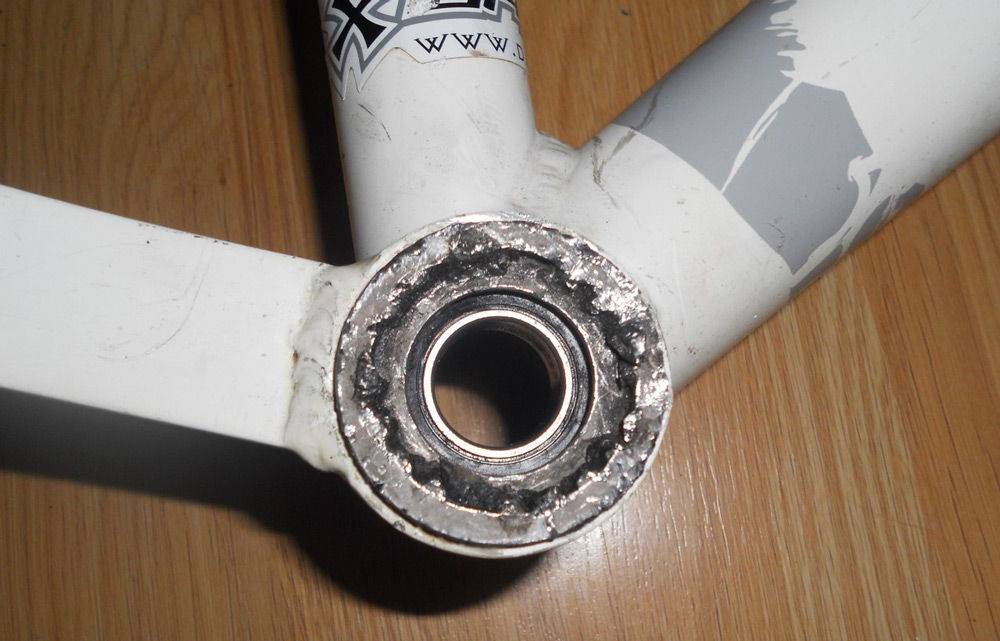 Резьба в шатуне для педали – это отдельная печальная тема. Часто пользователь перетягивает эту резьбу или наоборот не всегда контролирует затяжку и подтягивает разболтавшееся крепление. Это приводит к повреждению резьбы. Можно было бы нарезать резьбу большего диаметра, но тогда в образовавшееся отверстие не встанут стандартные педали. Помимо этого, резьба может повредиться из-за того, что ремонтник начал вкручивать педаль под небольшим углом и срезал грани резьбы, или лучше сказать – самостоятельно угробил резьбу. Во всех этих случаях шатуны потребуется демонтировать и/ или заменить на новые. Можно попытаться отремонтировать шатуны.