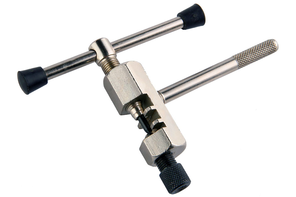 Прежде всего стоит обратить внимание на специальную выжимку. Последняя представляет собой несложное приспособление, напоминающее ручную станину со штоком, что осуществляет давление на оси (пины) звеньев