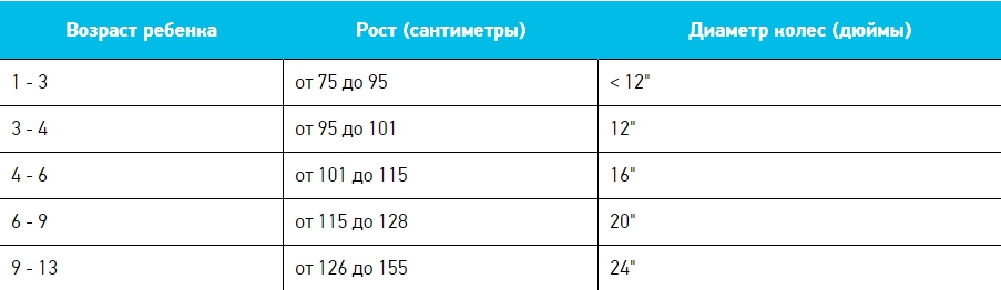 Подрастающему поколению байки подбираются, исходя из размера колеса, а не рамы. В учет берется рост ребенка, а также его возраст.