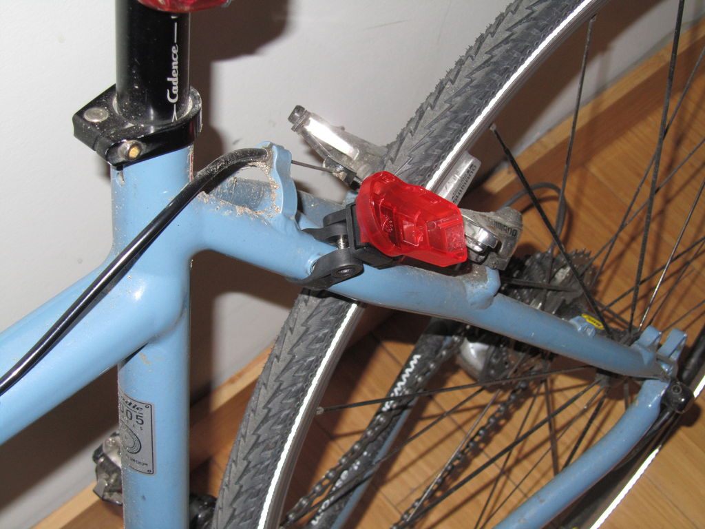 - Два задних мигающих фонаря для велосипеда (8 долларов каждый). Лампы в фонарях обязательно должны быть постоянно мигающими. Можно использовать такие: ссылка. Но у этих фонарей есть один недостаток схемы: если не включать их в течении 20 минут, то они начинают гореть постоянно, и в мигающий режим их нужно переключать вручную.