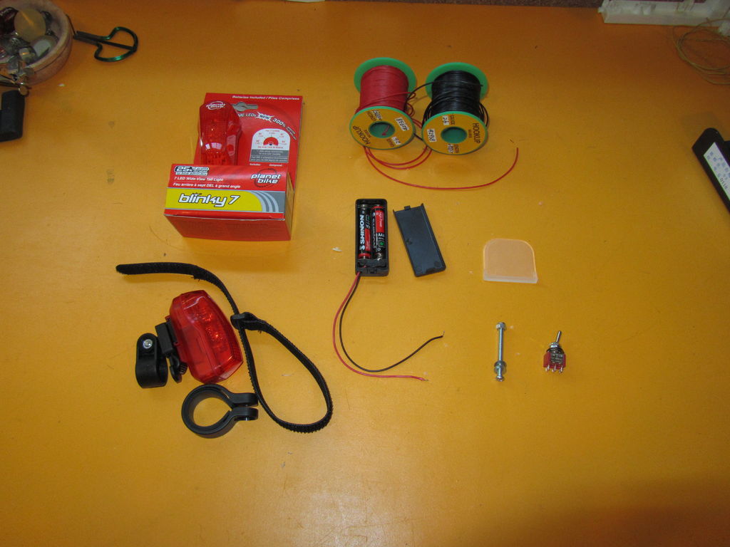 Материалы и инструменты для самоделки: – три велосипедных мигалки;– два тумблера для включения поворота;– USB-кабель (у автора длиной 1.83 метра);– хомуты, провода и другие мелочи.