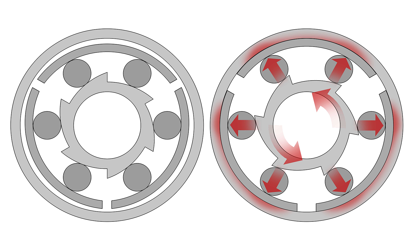Схематичное изображение принципа работы роллерного тормоза (источник изображения)