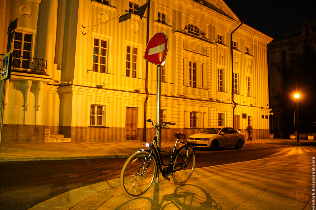 Фонари ночью обязательны, белый спереди и красный сзади. Без света вас могут просто не заметит, даже на освещённой улице. Или заметят слишком поздно. Лучше не рисковать и потратить пару сотен рублей на это.