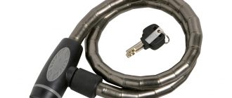 Трос противоугонный Такой замок является самым недорогим, и по этой причине самым распространенным. Но