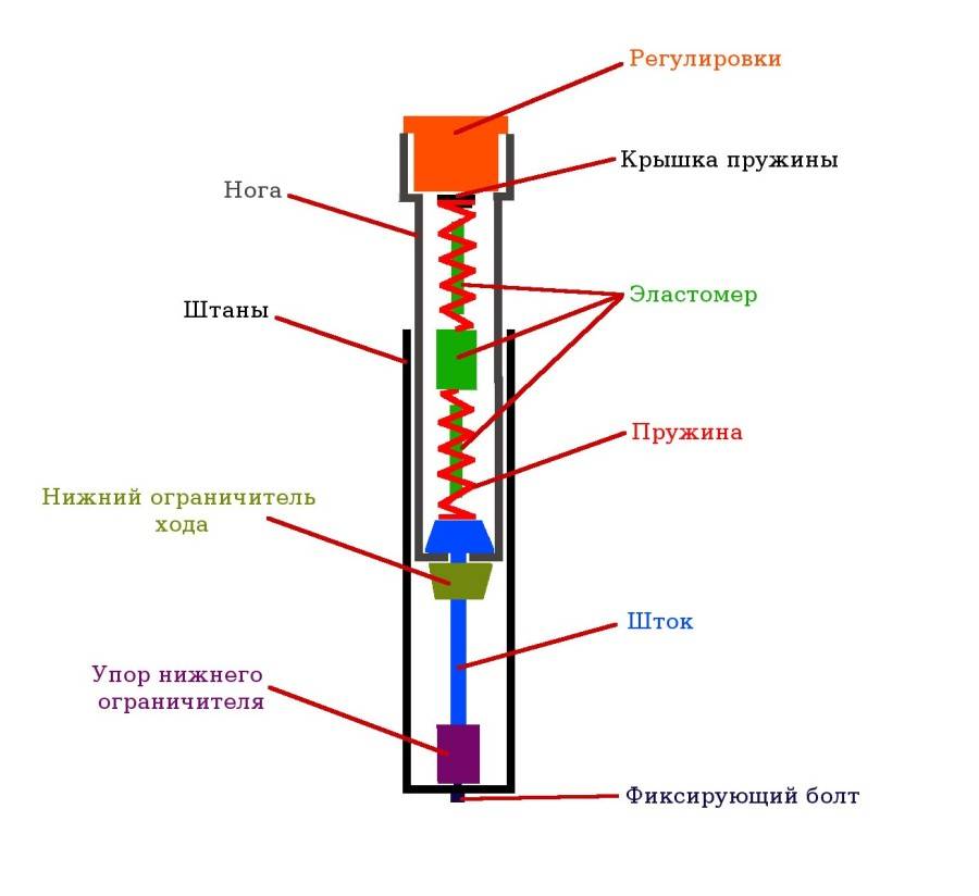 Рассмотрим процесс разборки на пружинно-эластомерной передней вилке: