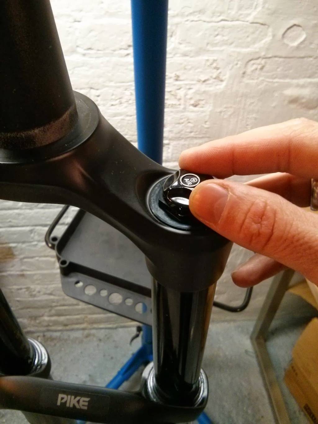 Установите выключатель демпфирования сжатия на «спуск» или в открытое положение, снимите кольцо, мягко установите велосипед и примите положение для езды. Старайтесь не трясти велосипед – вы подбираете постоянный вес.