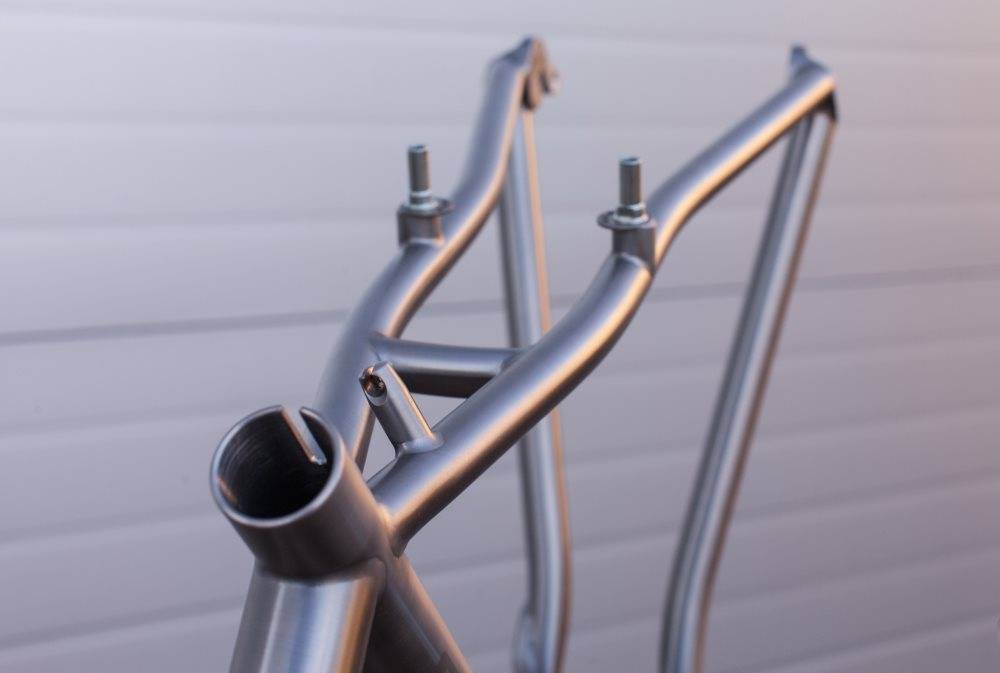 Титановая рама. Изделия из титановых сплавов имеют долгий срок службы, поскольку они почти так же прочны как стальные детали, и не разрушаются коррозией. Титановые трубы очень трудно поддаются сгибанию и сварке, поэтому велорама изготовленная из них будет стоить дорого.