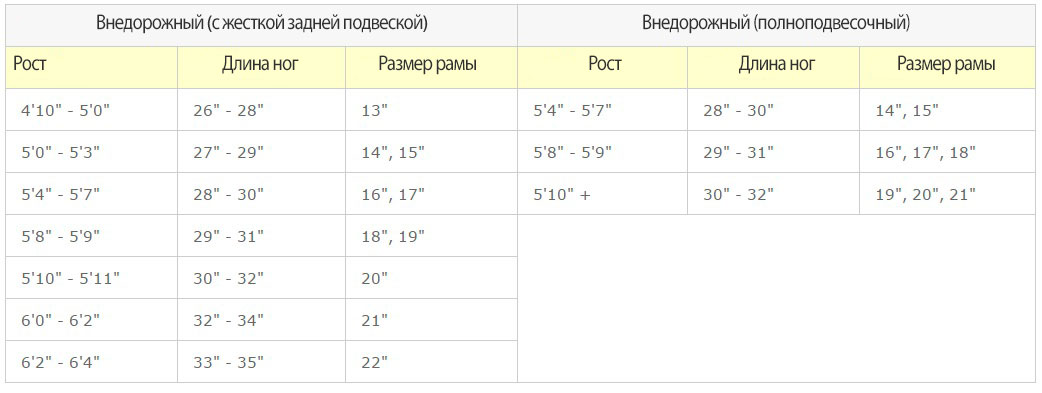 Для заездов по пересеченной местности советуют взять раму чуть меньше рекомендованной по росту