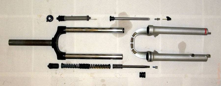 Эластомерные, в основе действия которых лежит резиновый или полимерный стержень. Хотя они и дороже предыдущих, но качество их работы трудно назвать удовлетворительным. Поэтому эластомерные амортизаторы используются только в вилках нижнего ценового диапазона.
