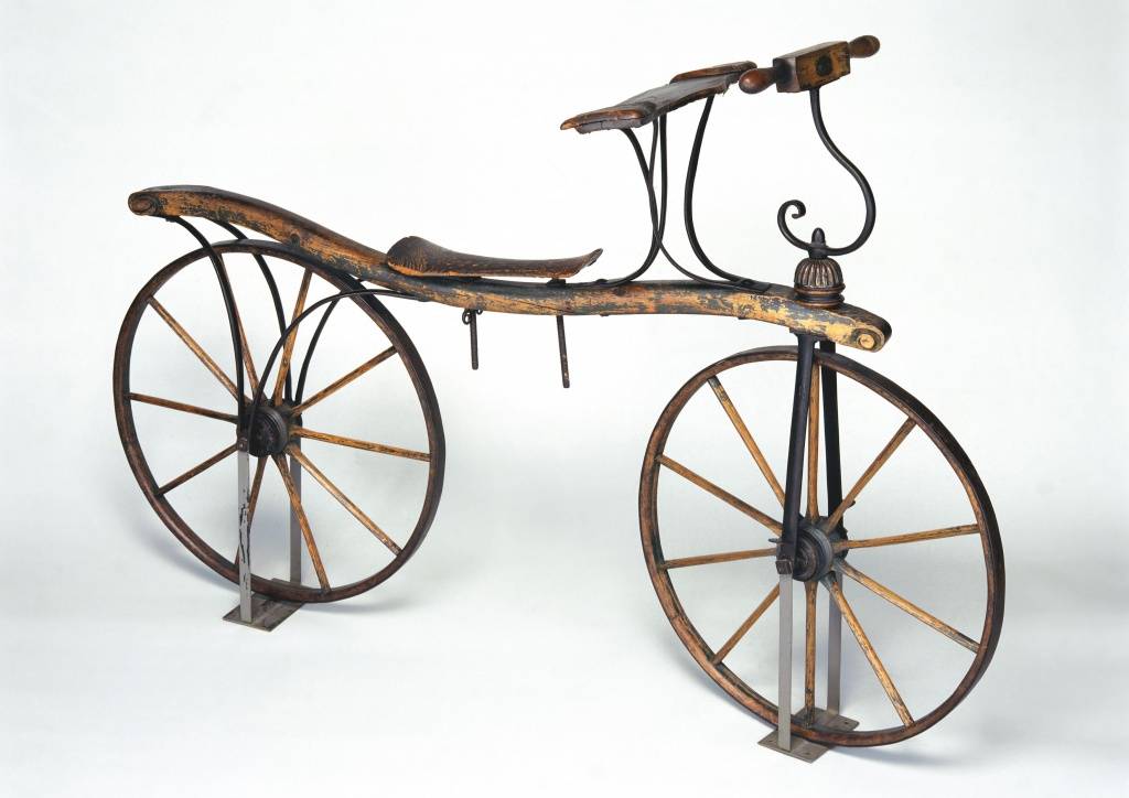 Дрезина была велосамокатом — двухколесной машиной с деревянной рамой и металлическими колесами, на которую надо было садиться верхом и ехать, отталкиваясь попеременно ногами, как при беге