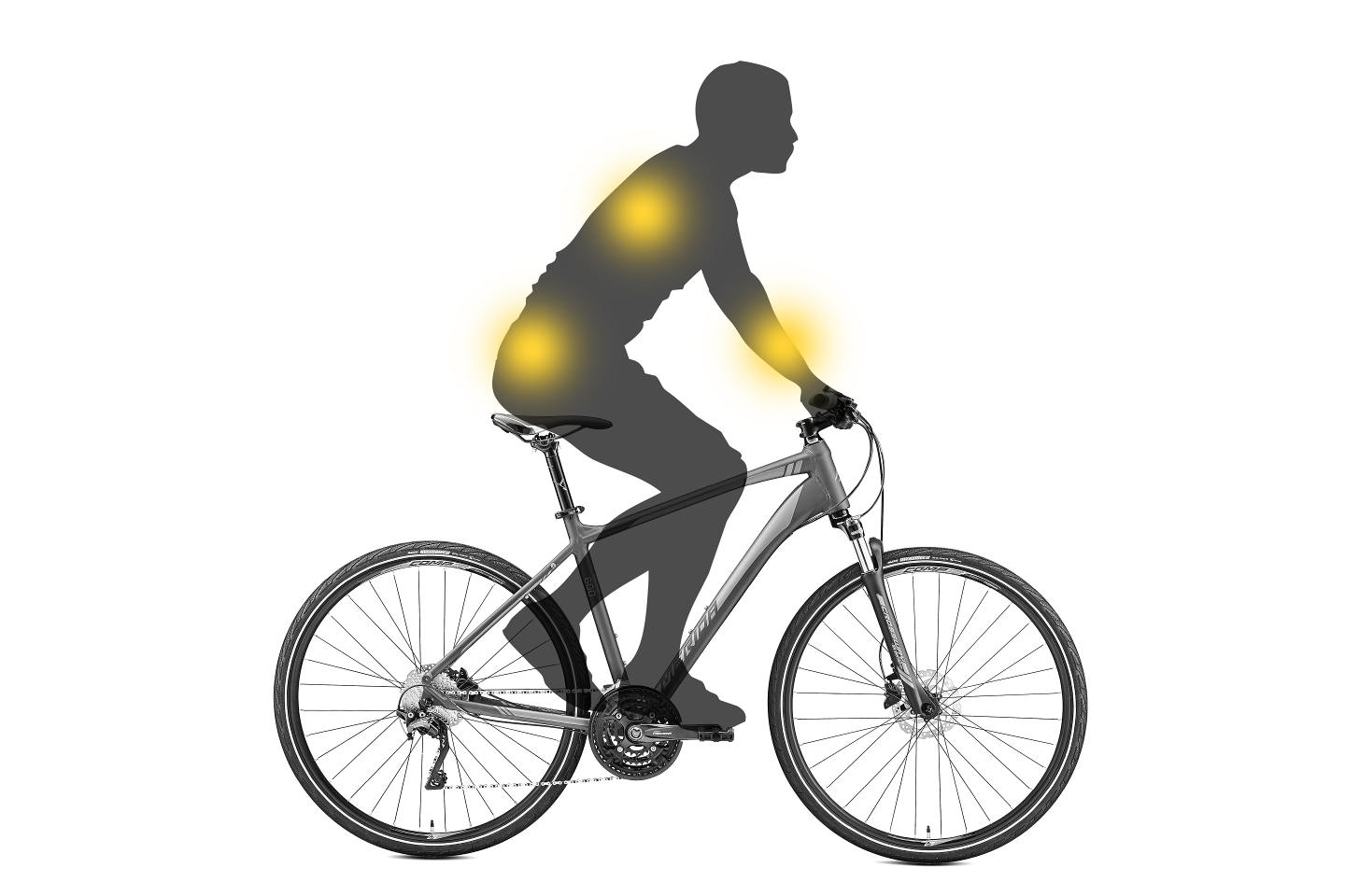 Крепление на уровне седла обеспечивает посадку под углом около 45 градусов, благодаря чему велосипедист имеет хороший обзор, возможность быстро крутить педали и невысокую нагрузку на позвоночник.