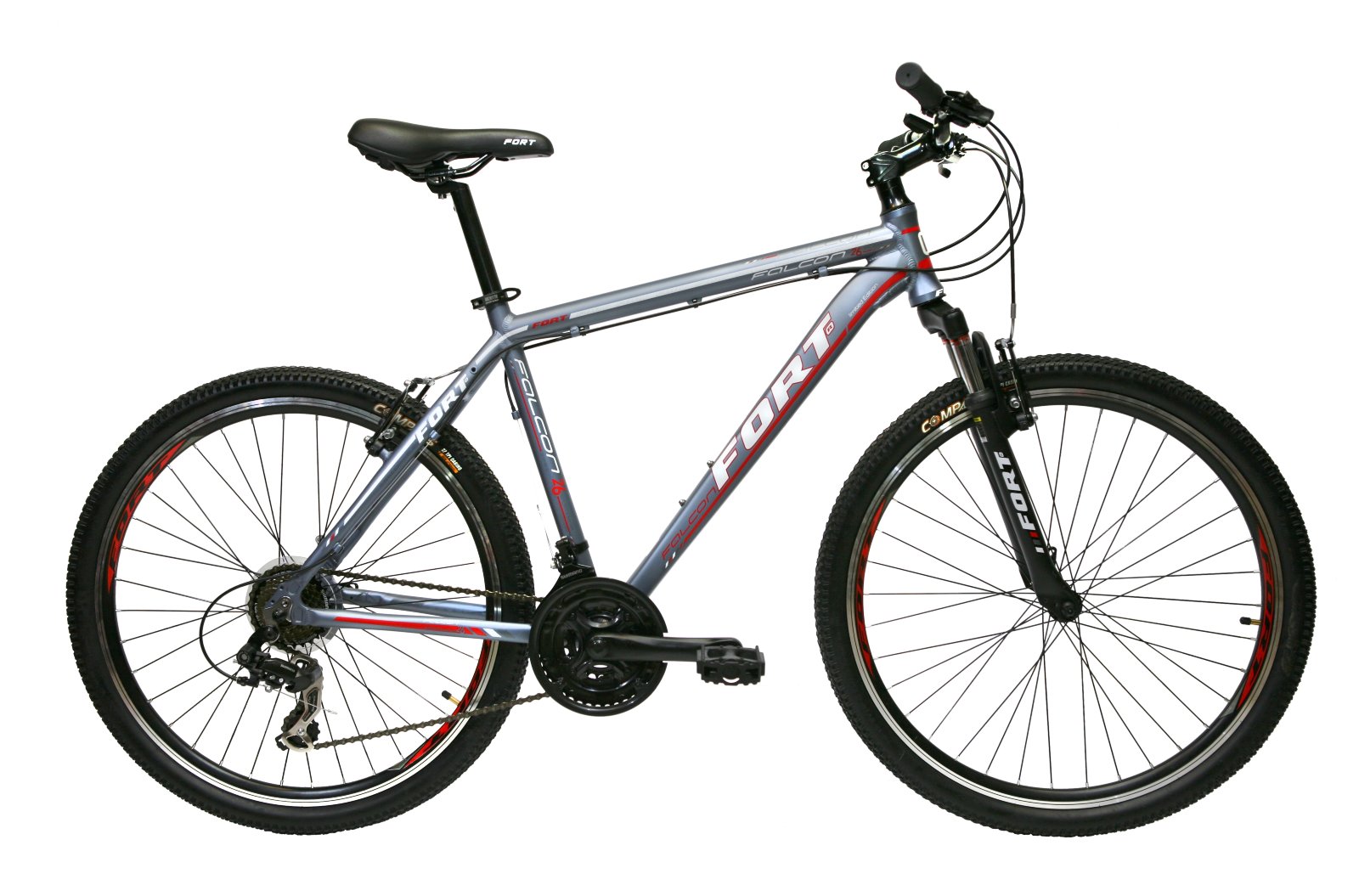 - 18-скоростной трансмиссией – переключение скоростей обеспечивает Shimano Tourney;