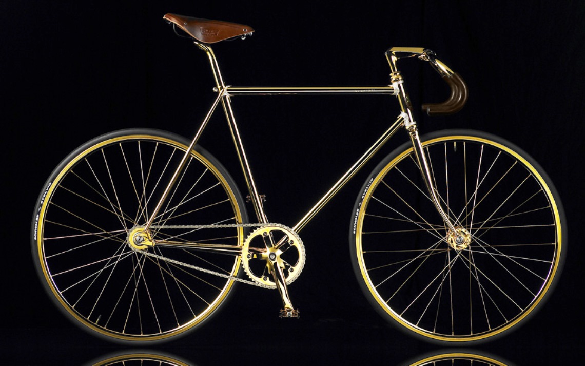 Шведская компания Aurumania всегда позиционировала себя как производитель роскошных велосипедов, но в 2009 году она поразила публику эксклюзивным и дорогим даже для себя экземпляром. Все видимые элементы Crystal Edition Gold Bike покрыты 24-каратным желтым золотом. Но и этого производителю показалось не достаточным, и он добавил 600 кристаллов Swarovski для большего лоска и блеска. Седло и руль обтянуты натуральной кожей.