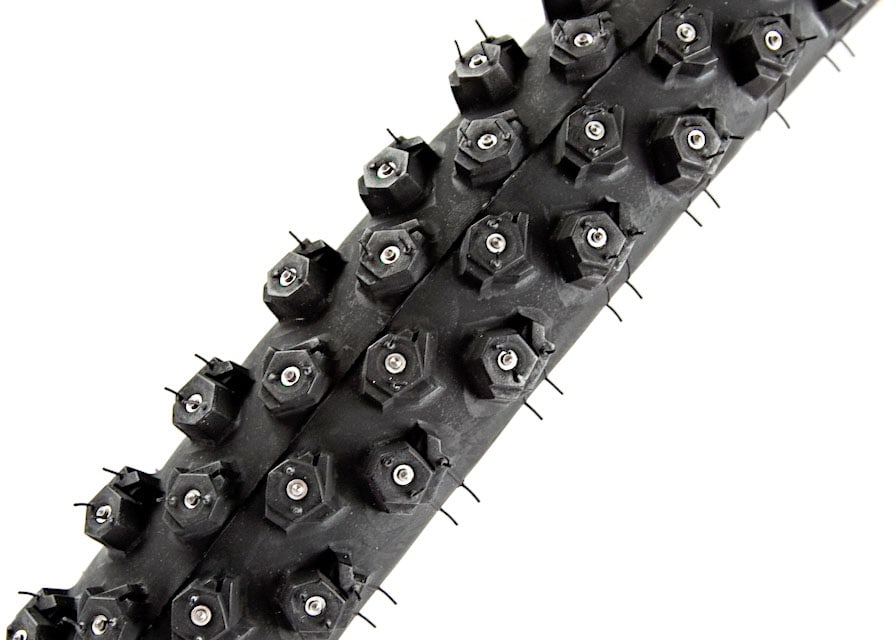 В интернете ведутся споры о двухрядовой резине. Характеризуется шипами по краям протектора. По центру остаются только зацепы из резины. Главная идея – комфортное передвижение без шипов по участку без снега и льда, как только велосипед начинает вести – шипы касаются покрытия.