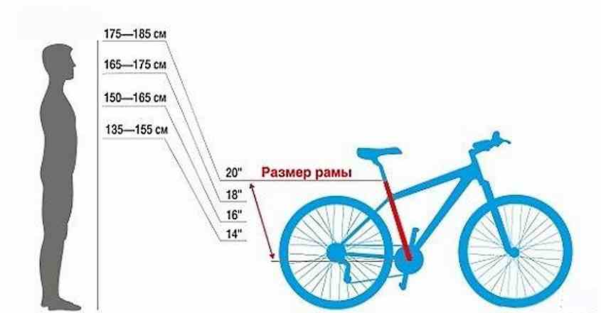 Правильно выбрать раму — залог удобства и комфорта при катании. Что же нужно знать, чтобы правильно ее подобрать? Есть несколько способов определения размера рамы — таблица ростовок, ее можно легко найти в интернете, но надо учитывать, что у каждой торговой марки показатели могут немного отличаться. Если очень кратко, то 14 рама подойдет для роста 135–155 см., 16 — 155–165, 18 — 165–175, 20 — 175–185. Нужно учитывать, что у велосипедов могут быть колеса 26, 27.5 и 29 дюймов. У велосипедов с колесами 29 дюймов номера рам нечетные(17, 19, 21). Эти модели для высоких людей от 185 и выше, им комфортнее на таких моделях в плане осанки и правильного положения ног.