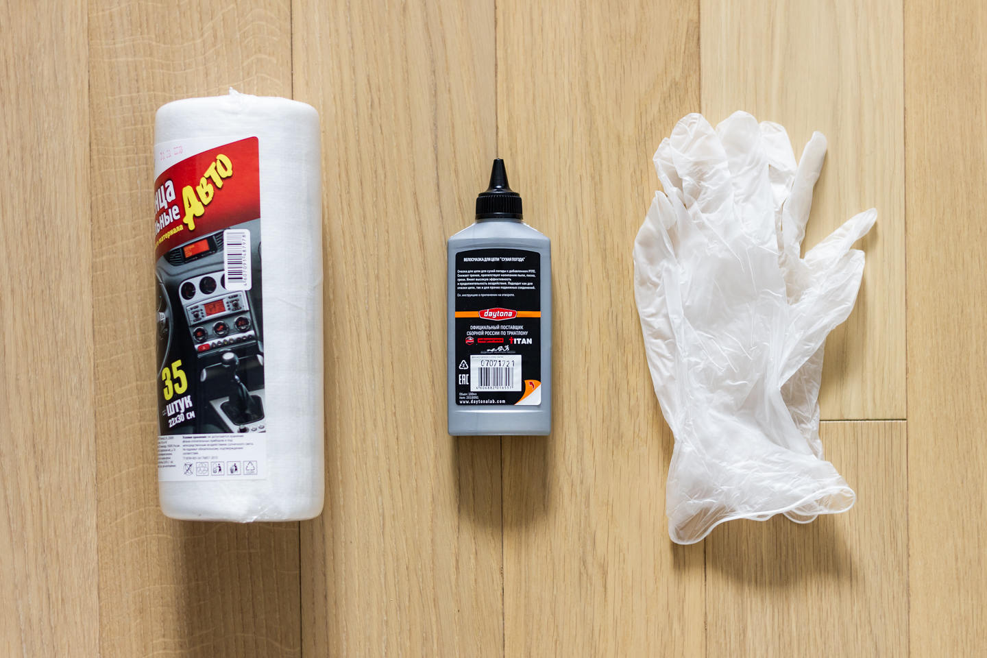 Когда смазка проникла внутрь валиков цепи, чистой тряпкой убрать ее излишки снаружи