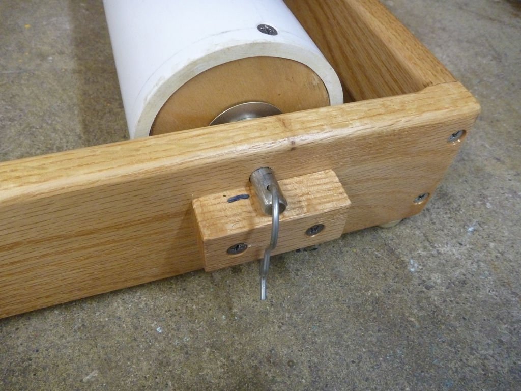 Передний ролик конструкции располагается почти у самой передней грани деревянного каркаса – это нужно для упора переднего колеса. Одно из преимуществ данного типа тренажера кроется в том, что есть возможность сразу установить механизм регулирования нагрузки.