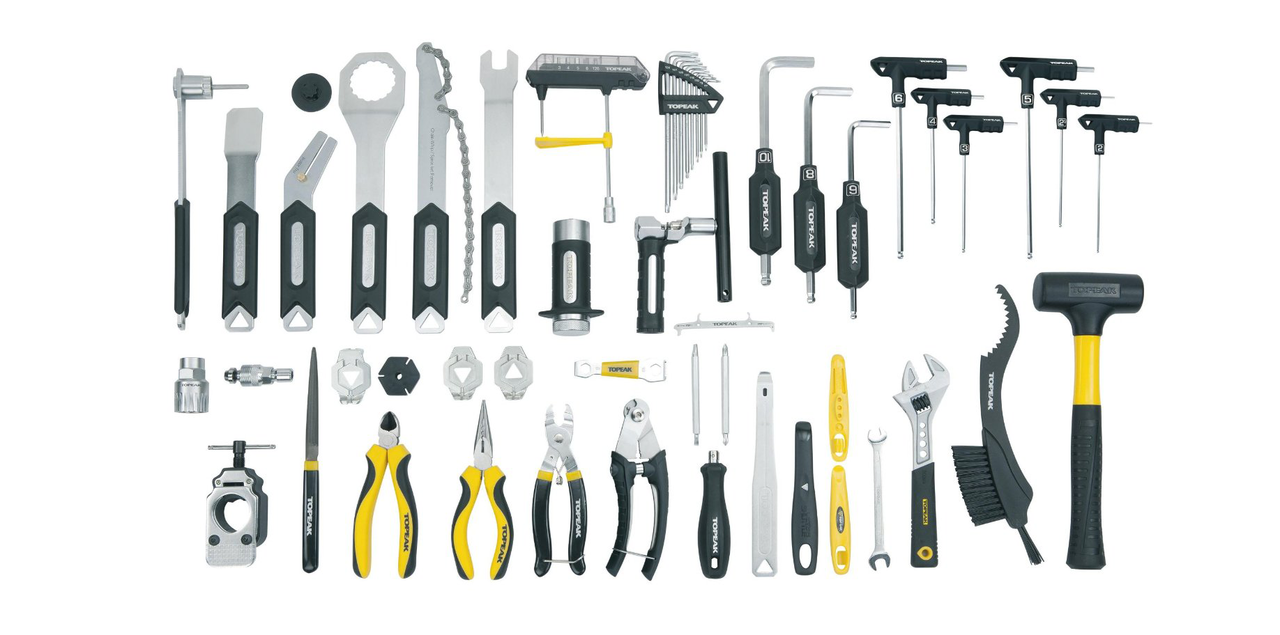 Качественное сервисное обслуживание велосипедов, особенно дорогих эксклюзивных моделей, требует использования хороших надежных инструментов, материалов, устройств. Ниже предлагается базовый набор, рекомендуемый экспертами велосипедного дела. Его желательно иметь каждому велосипедисту. Заменить данный перечень какими-либо аналогами попросту невозможно.