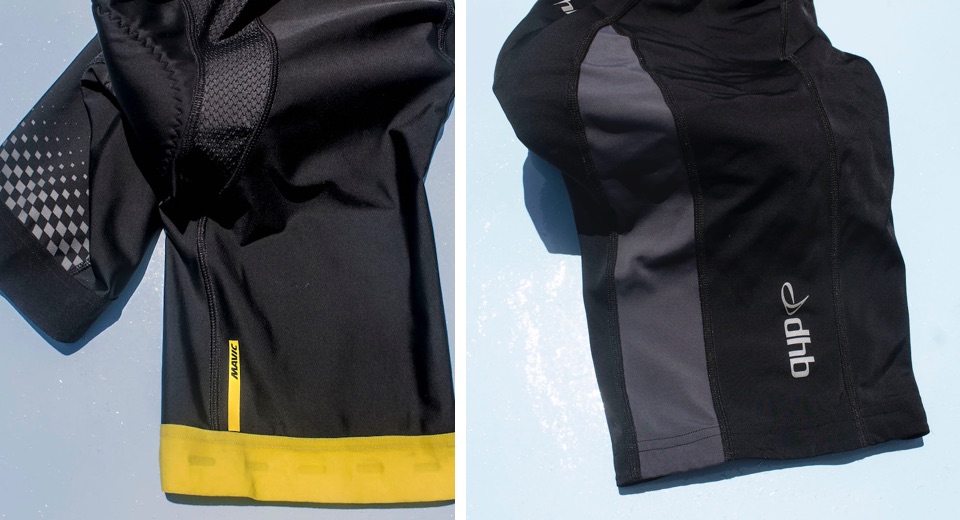 Ткань недорогих шорт, не то что бы совсем плохая, но в ней комфортно только при умеренных температурах, 18-25С. Mavic же прекрасно справляется даже c температурами выше 30С. Что касается надежности, dhb также разочаровало: шорты стали протираться через полгода не слишком активной эксплуатации.