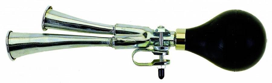 Этот вид хорошая альтернатива механике. Он тоже широко известен во всем мире много десятилетий. Клаксон состоит из пластиковой или металлической трубки с встроенной пищалкой и резиновой груши. При нажатии на грушу (воздух из груши проходит через пищалку) трубка воспроизводит резкие, прерывистые сигналы. Тональность звука может меняться в зависимости от длины и ширины основания трубки. Очень часто этот вариант гудков используют на детских моделях велосипедов.