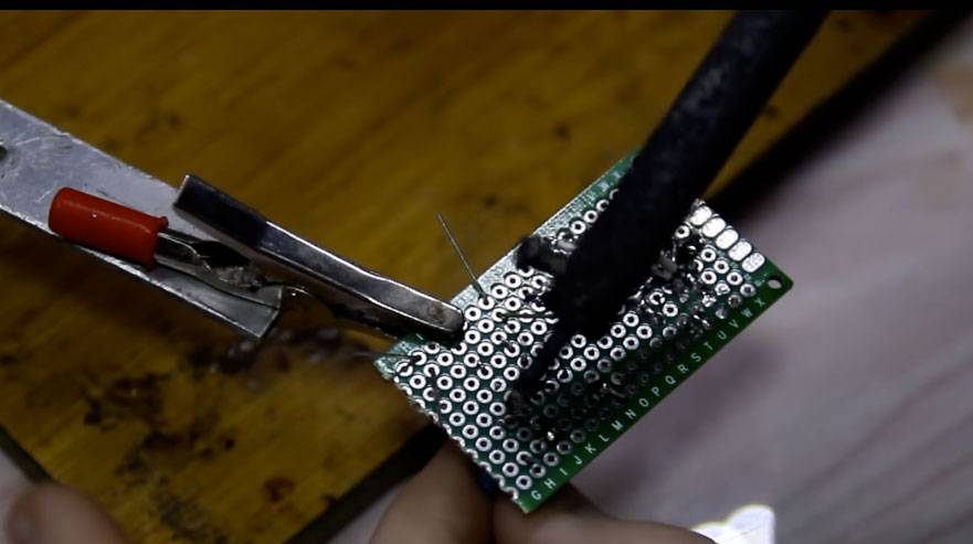 Далее приступаем к спаиванию пустых отверстий с помощью паяльника. Чтобы не повредить нужные отверстия, делаем все очень аккуратно.