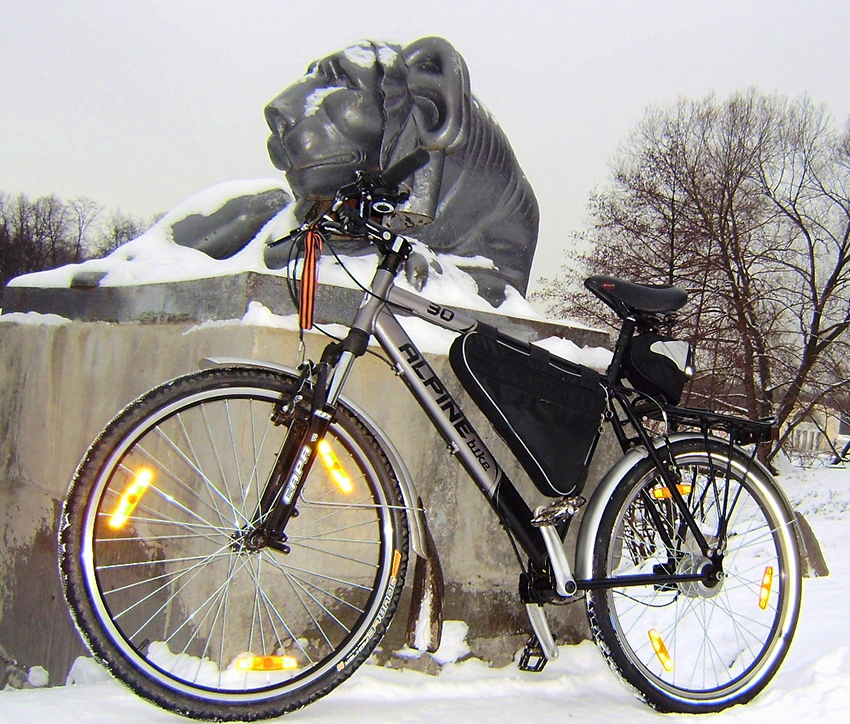 - Безупречная балансировка веса – при расположении электромотора впереди и батареи на багажнике. При удачном распределении массы обеспечивается максимальная эффективность торможения. Это особенно ощутимо, когда велосипед с передним мотор-колесом используется для езды по скользкой заснеженной поверхности. Существенный перевес, наоборот, приводит к непредсказуемому поведению транспортного средства.
