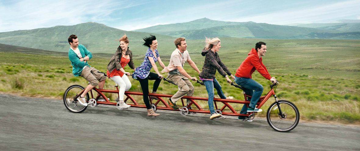 - Если один велосипедист устает, то для отдыха достаточно просто поменяться местами, ведь последний пассажир может ехать, буквально закрыв глаза, и даже опустить усталые руки на ровных участках трассы.