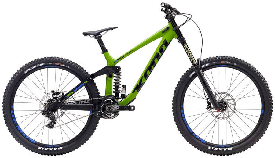 Говоря про Kona, было бы неправильно не упомянуть про самую популярную даунхильную модель, которая знаменита не только среди поклонников этого бренда, но и среди других прорайдеров. Этот байк оборудован подвеской 200/200. Передняя вилка – двухкоронная RoksShox Boxxer. Главным преимуществом данного байка перед своими конкурентами является эти укороченные нижние задние перья.