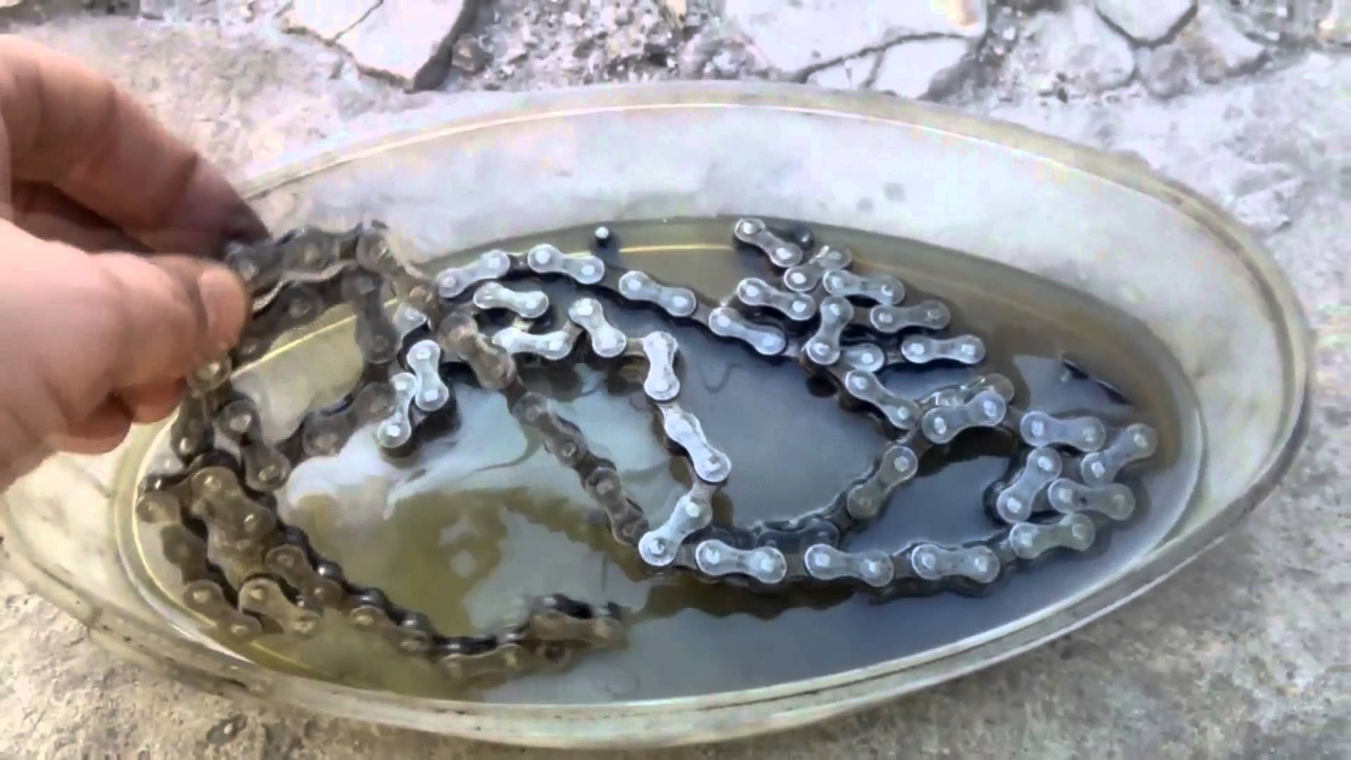 После снятия, вы можете погрузить цепь в пластиковую бутылку, заполненную моющим средством (ранее применялся исключительно керосин). Затем «коктейль» энергично встряхивается, как шейкер.
